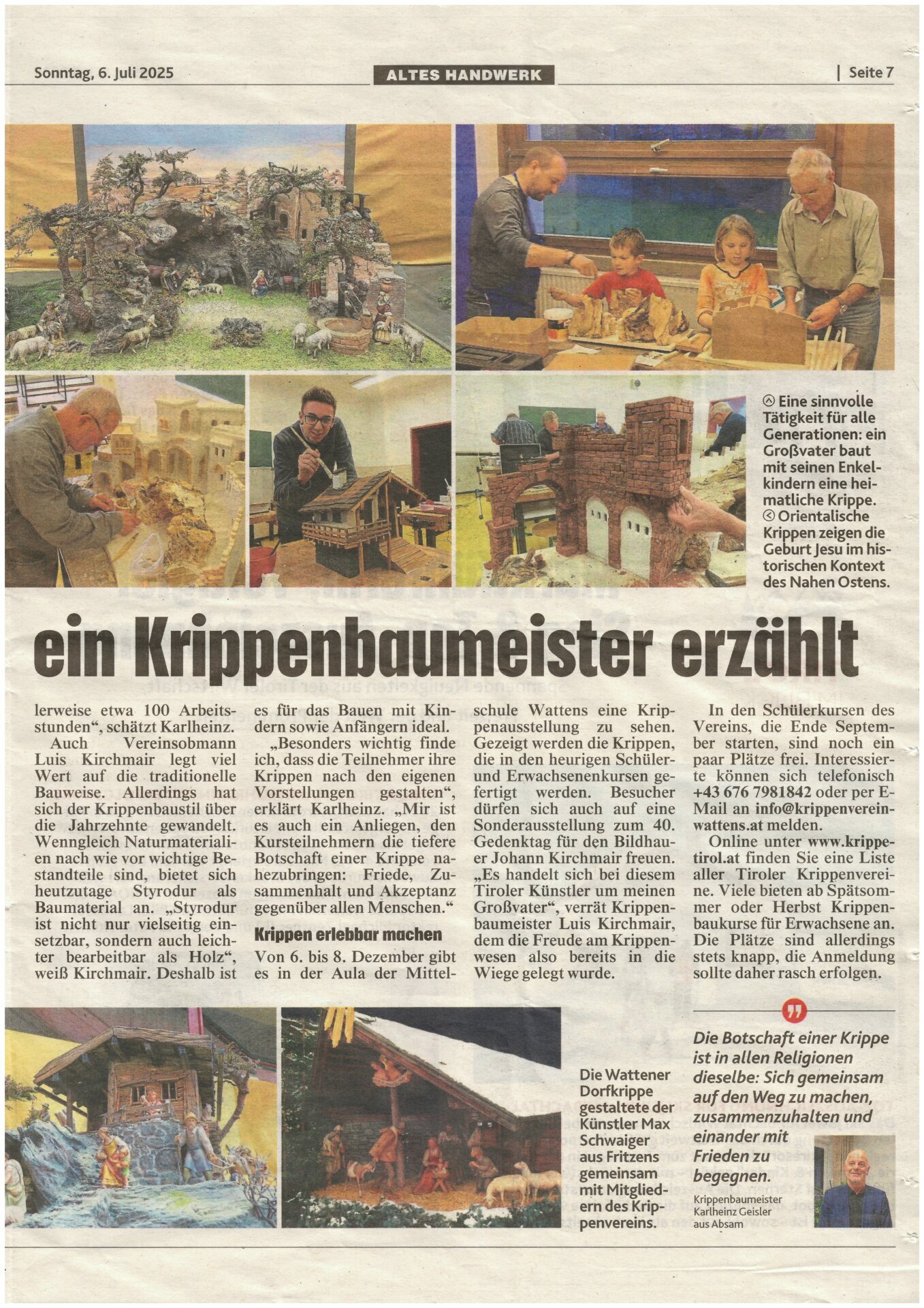 Artikel in Tiroler Krone am So.06.07.2025